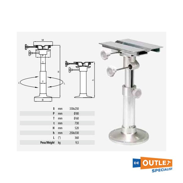 Base de chaise de direction réglable de Bessenzoni dans la couleur noire. Ce châssis est réglable en hauteur. La hauteur varie de 520 à 730 mm.