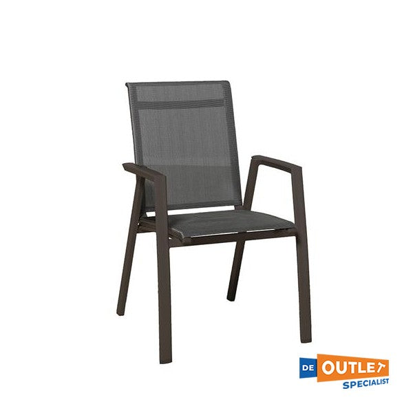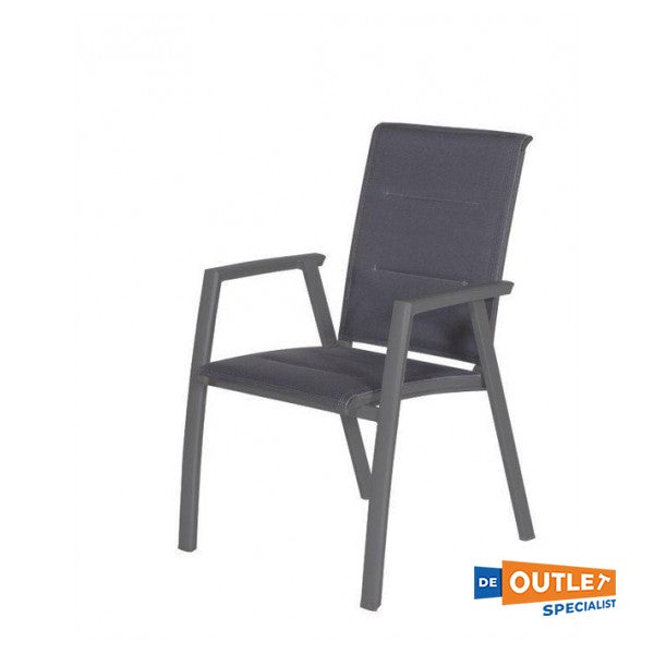 Le cadre en aluminium robuste est entretenu et résistant aux conditions météorologiques. Le siège et le dossier sont faits de texitéléens, il s'agit d'un matériau rapide et résistant aux intempéries.