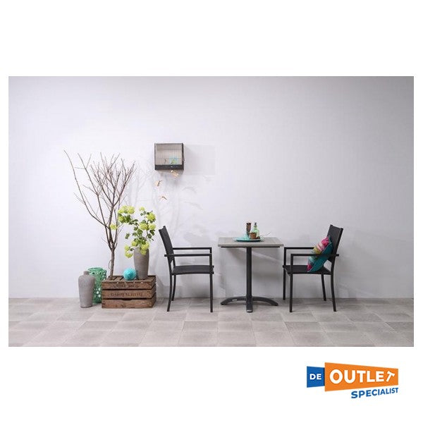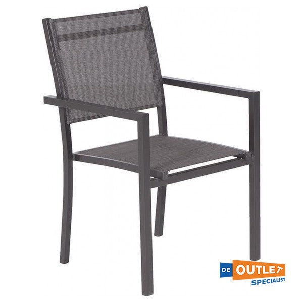 Le cadre en aluminium est facile à entretenir et le siège est à nouveau sec après une douche de pluie. La chaise est empilable, vous pouvez donc stocker efficacement les sièges.