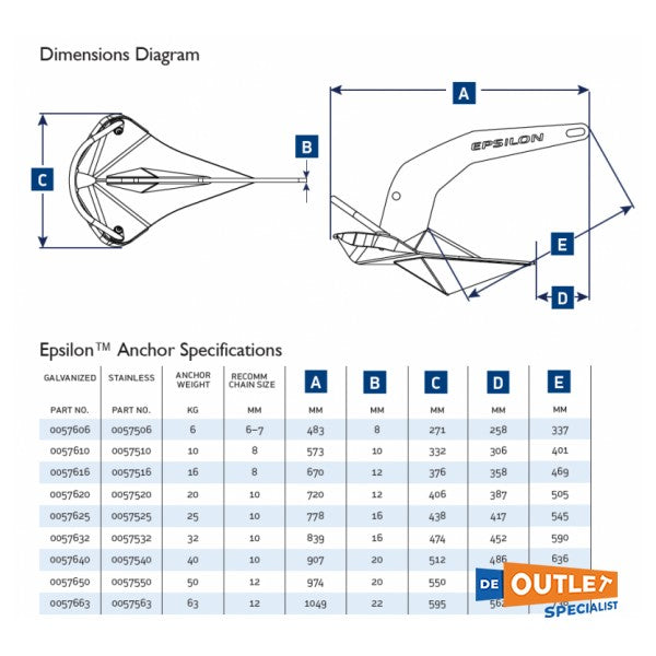 Voici quelques spécifications du Lewmar Epsilon Anker: