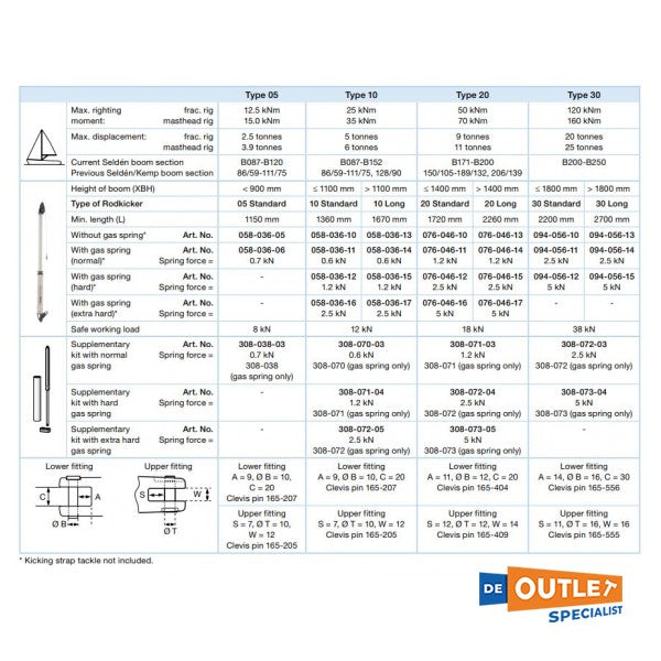 Les Seldén Rodkickers sont en aluminium anodisé et ont été soigneusement testés pour répondre aux performances strictes et aux exigences de qualité. Le raccord d'extrémité rond avec le disque et la broche fendue sécurisée est conçu pour empêcher la voile de rester coincé. Le bouchon final d'extrusion intérieur agit comme un bus facilement continu et empêche le métal sur le métal. Le roulement de glissement supérieur fonctionne également comme un tampon élastique pour atténuer le choc lorsque le botteur relève soudainement de l'eau. Le Rodkicker peut être fourni avec un ressort de gaz intégré.